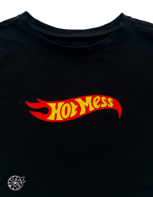 Upcycled Black Hot Mess Crop Top Shirt | Size Large