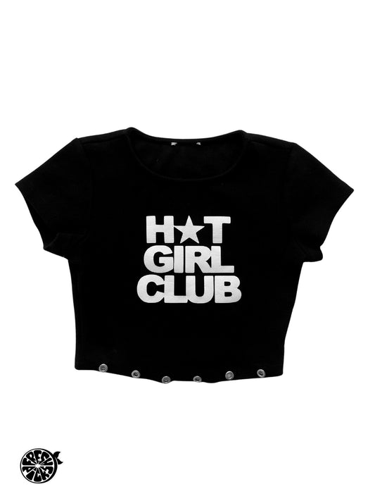 Upcycled Hot Girl Club Black Punk Crop Top with Eyelets - Size XS